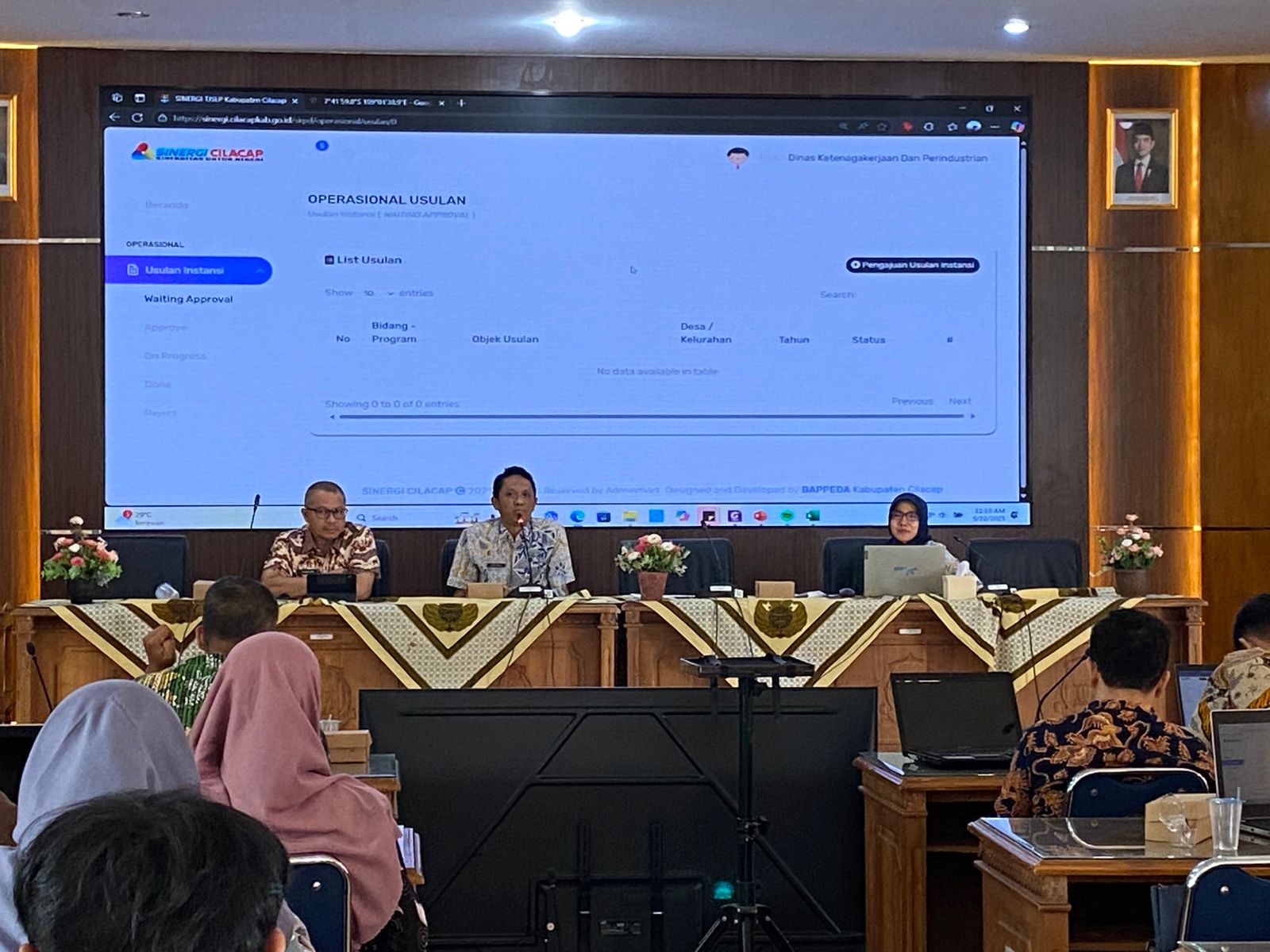 Narasumber dari Dinas Komunikasi dan Informatika (Diskominfo) Kabupaten Cilacap (Bpk Chairil Taufan, S.T) menyampaikan bahwa data lama dari aplikasi Sinergi Cilacap masih tetap aman. Data baru hasil penginputan dari Perangkat Daerah akan menambah program/kegiatan di aplikasi Sinergi Cilacap. Bahwa sesuai SOTK yang baru beberapa Perangkat Daerah yang bergabung akan dibuatkan di aplikasi sinergi cilacap.