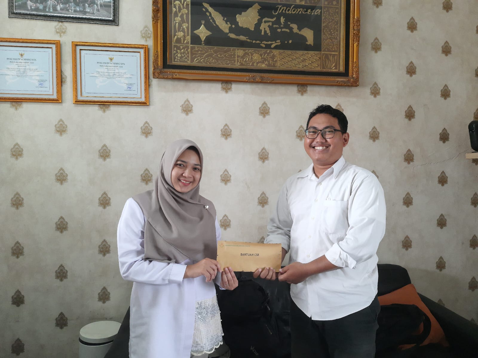 Penyerahan bantuan dana untuk kegiatan pengajian dan khotmil qur'an dalam rangka peringatan maulid nabi Muhammad SAW