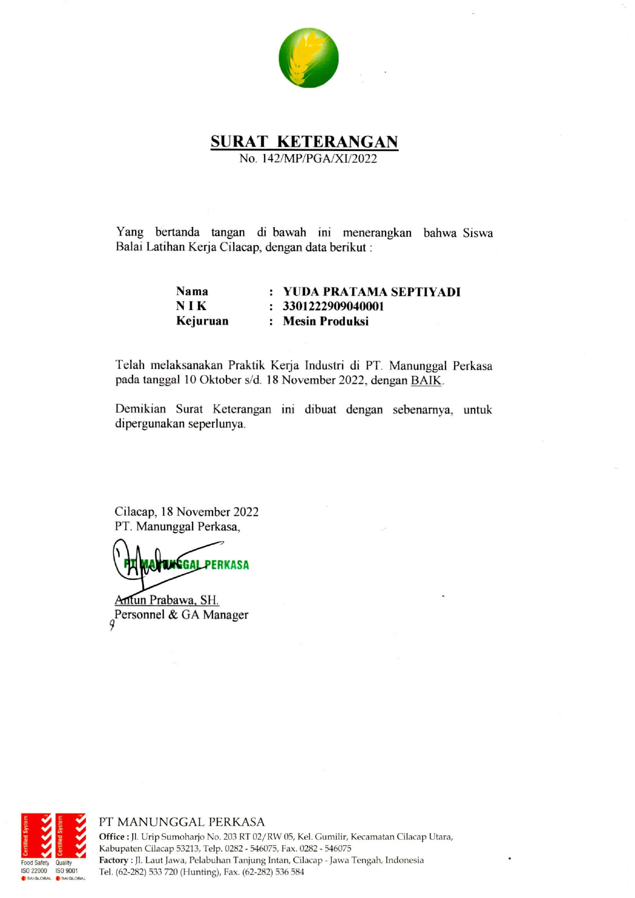 | Keterangan | : | Bantuan untuk Praktek Kerja Lapangan Siswa BLK Cilacap |