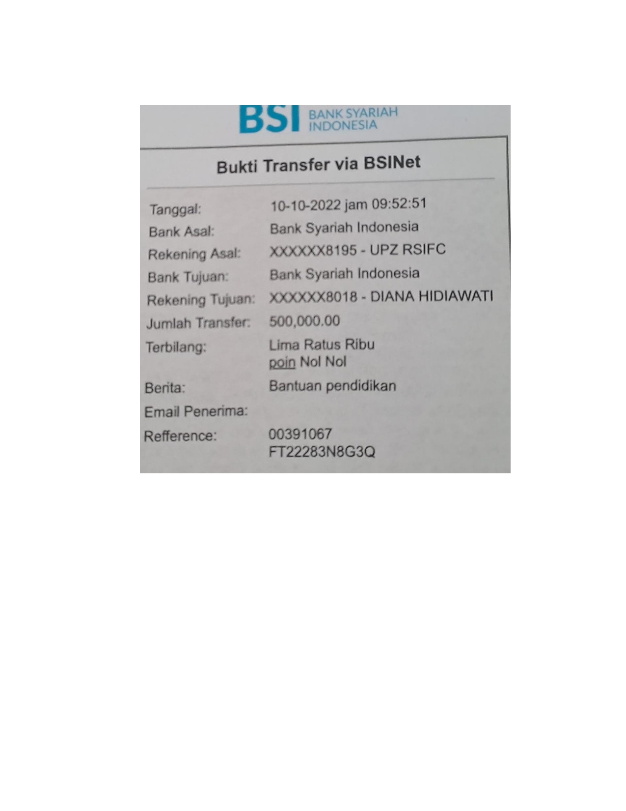 | Keterangan | : | Bantuan Biaya Pendidikan Putra-putri Ibu Diana |