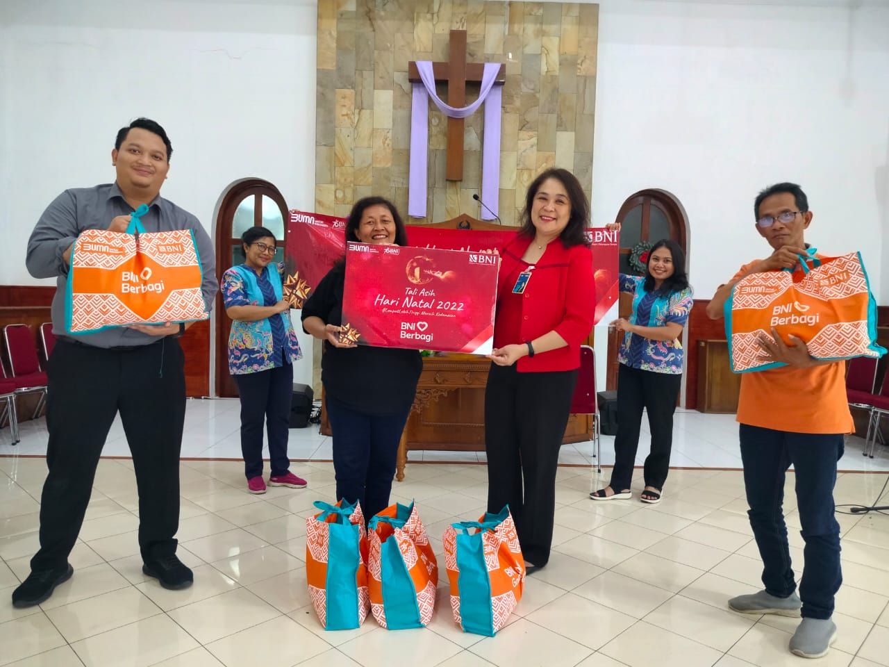 Pembagian sembako dalam rangka perayaan natal 2022 bni kc cilacap