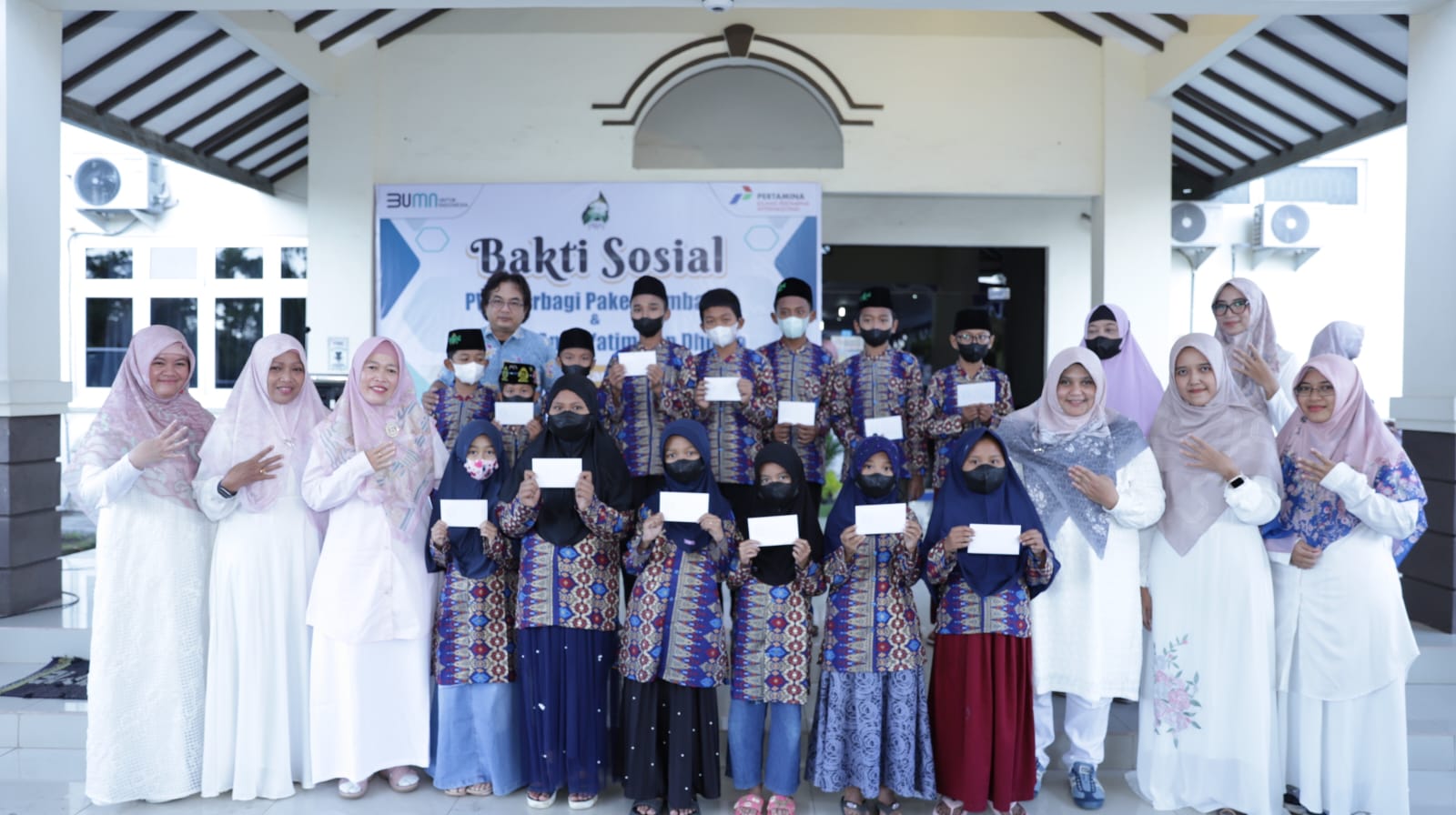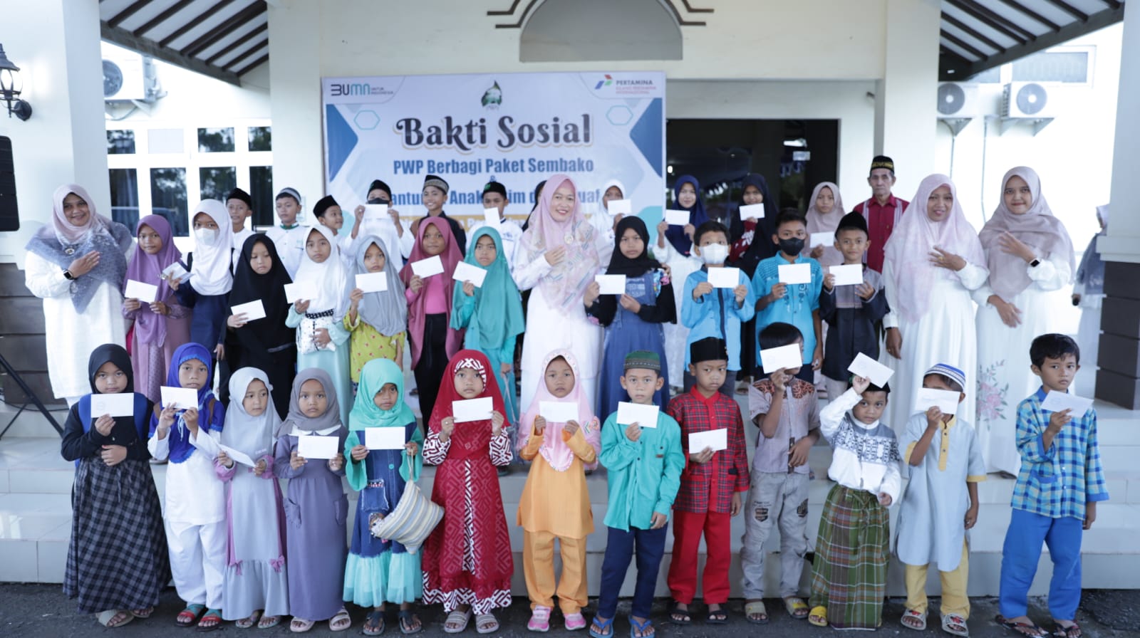 Santunan diberikan untuk 300 anak yatim di wilayah Ring 1 Pertamina RU IV Cilacap dalam kegiatan Bakti Sosial yang diselenggarakan oleh Persatuan Wanita Patra (PWP) RU IV Cilacap yang beranggotakan istri pekerja Pertamina