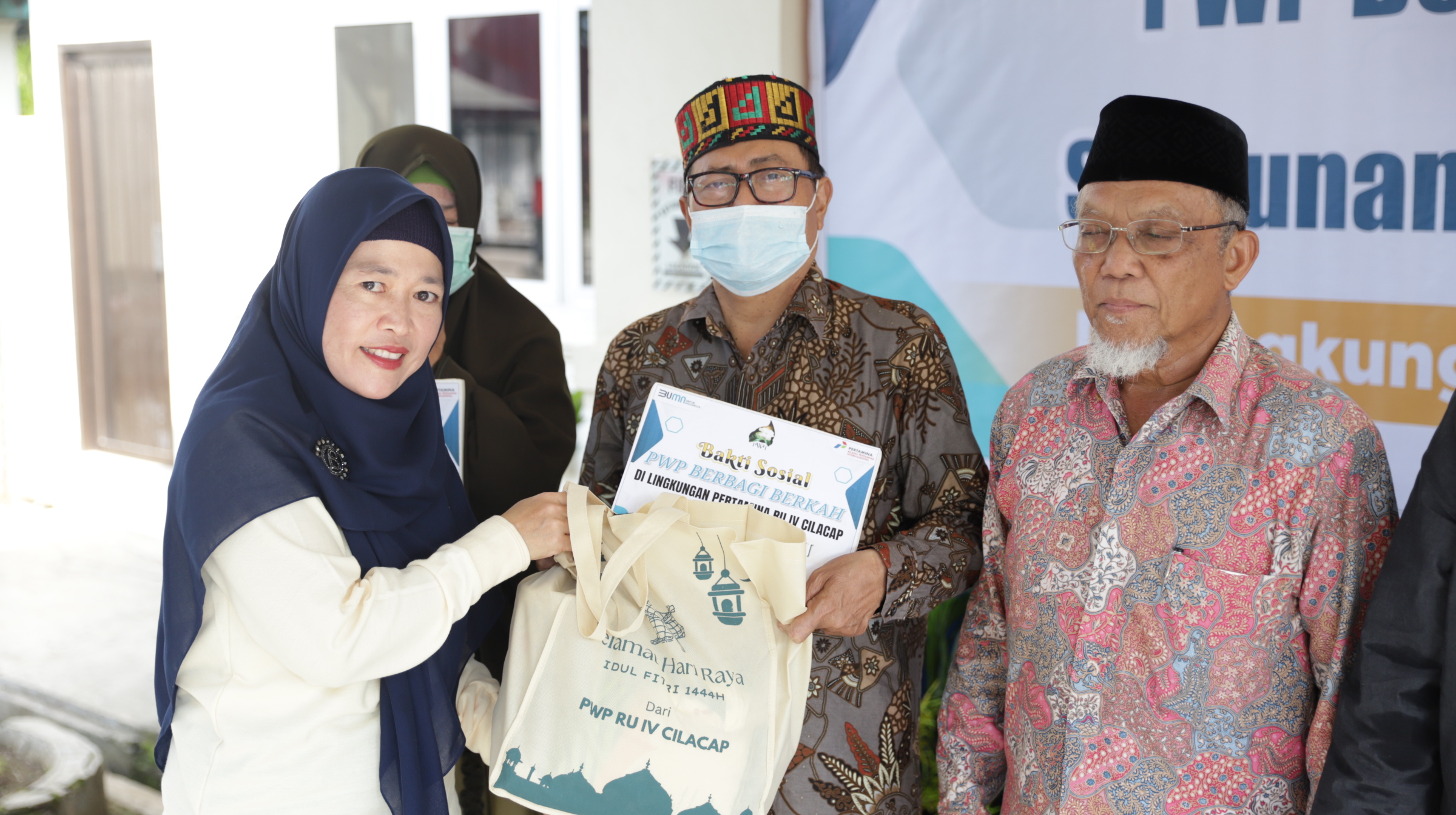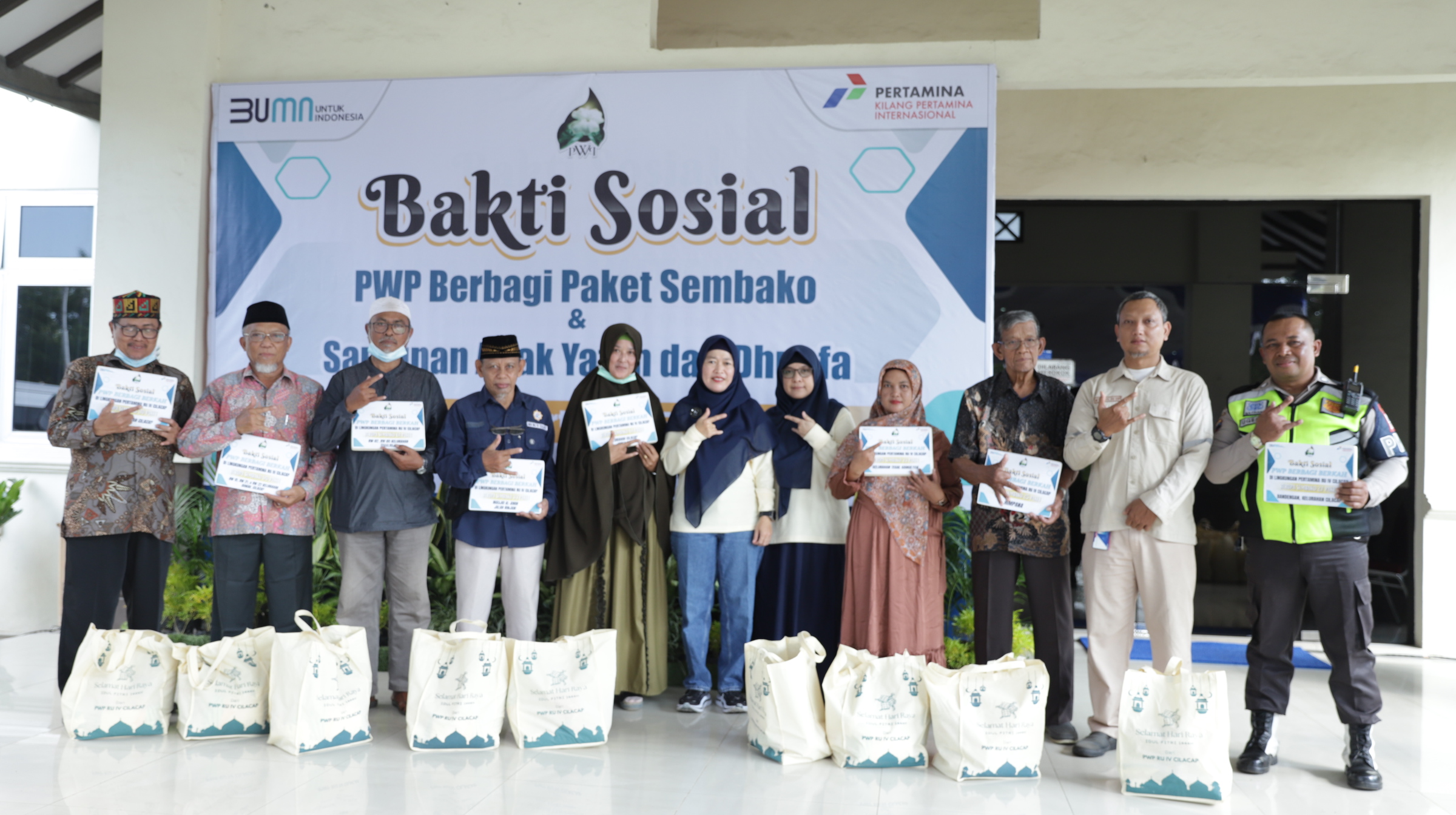 Bantuan bingkisan sembako dibagikan kepada 30 warga di RW 01 Kelurahan Cilacap dalam acara Bakti Sosial yang diselenggarakan oleh Persatuan Wanita Patra (PWP) Pertamina RU IV Cilacap