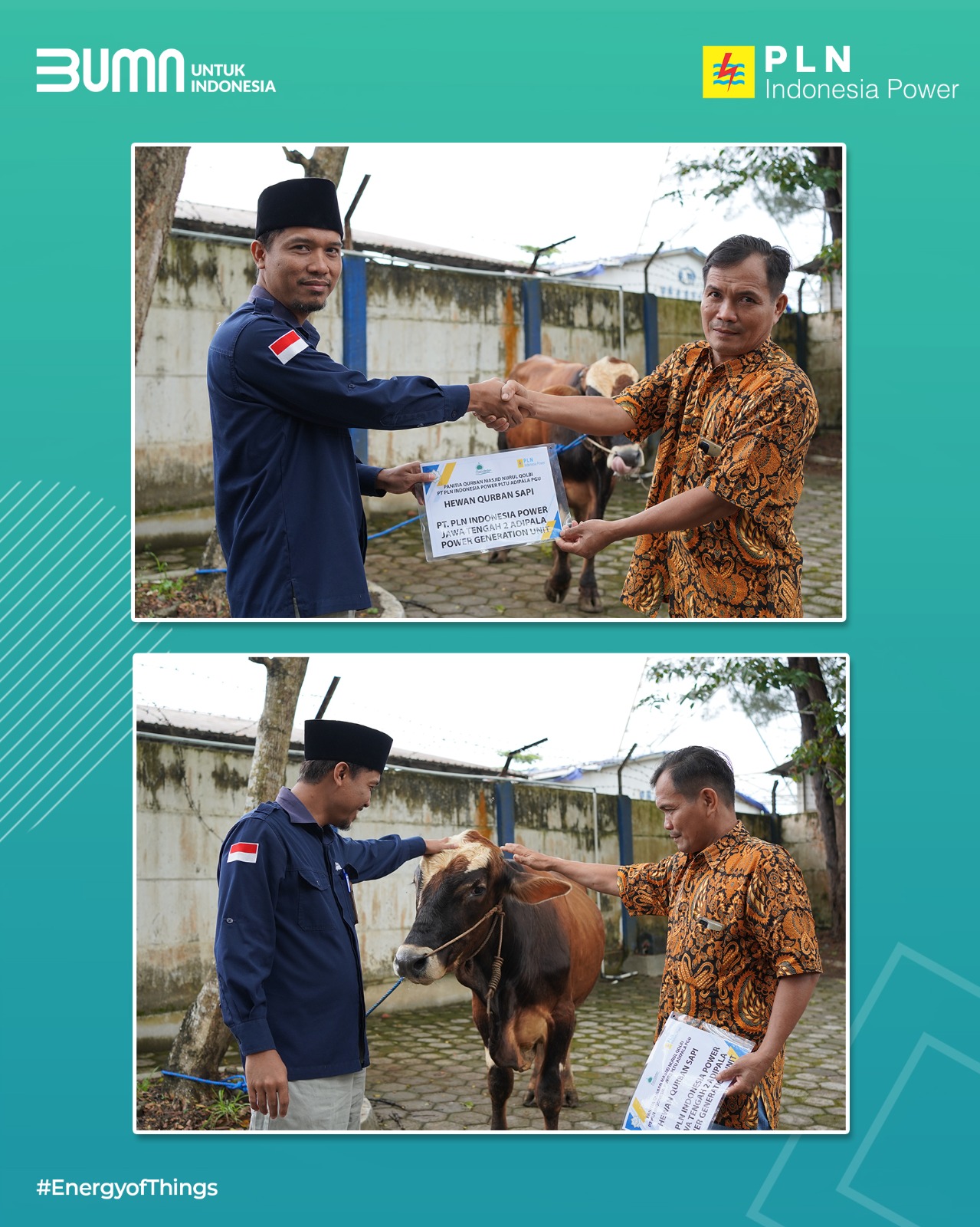 PLN Indonesia Power Adipala PGU bersinergi dengan anak perusahaan menyerahkan hewan qurban kepada masyarakat Desa Bunton sebagai wilayah terdekat dengan unit pembangkit yang pada kesempatan tersebut diserahkan secara simbolis oleh PLS Senior Manager Adipala PGU I Wayan Arimbawa kepada Yusin selalu kepala dusun setempat.