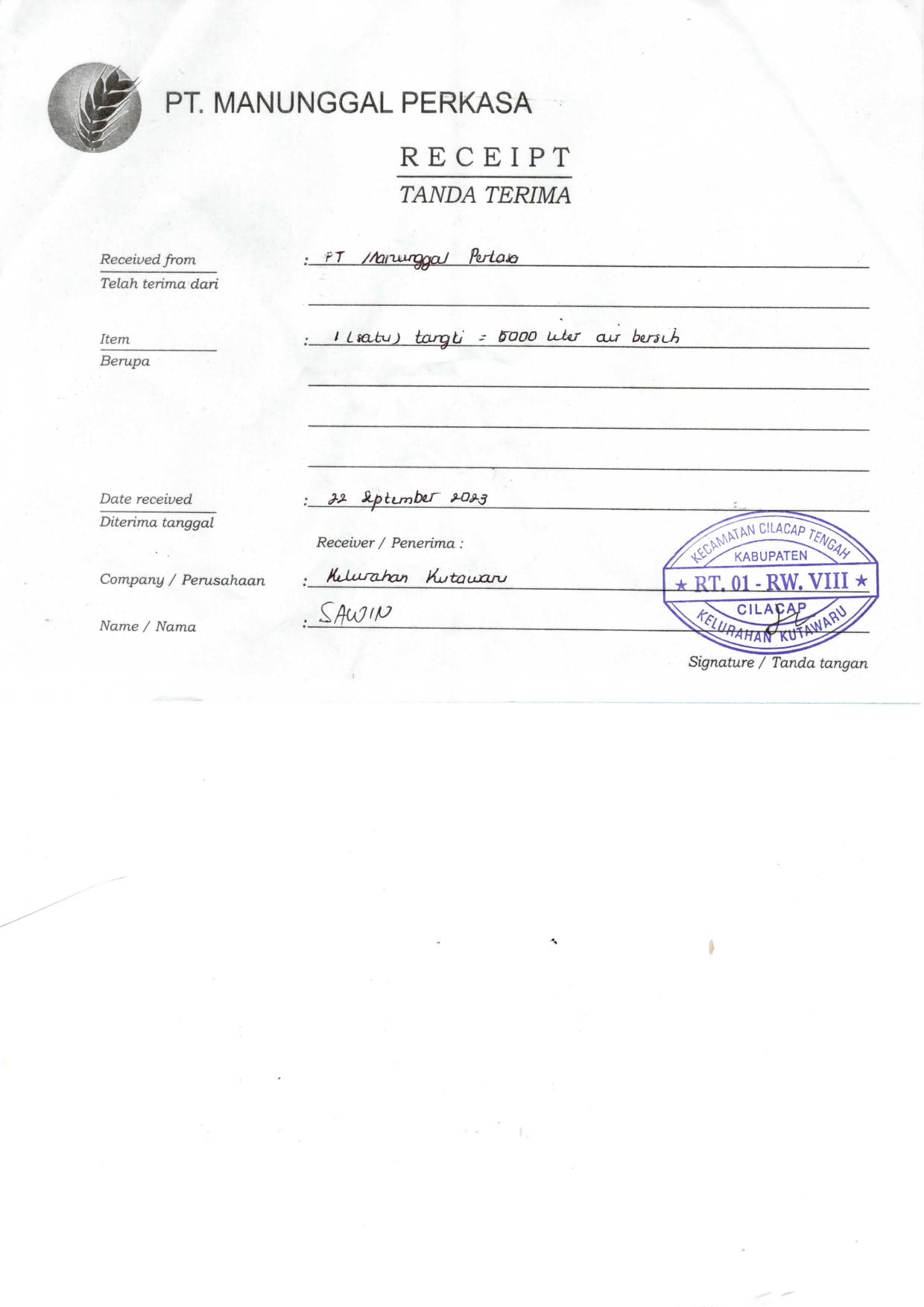 REALISASI PT. MANUNGGAL PERKASA