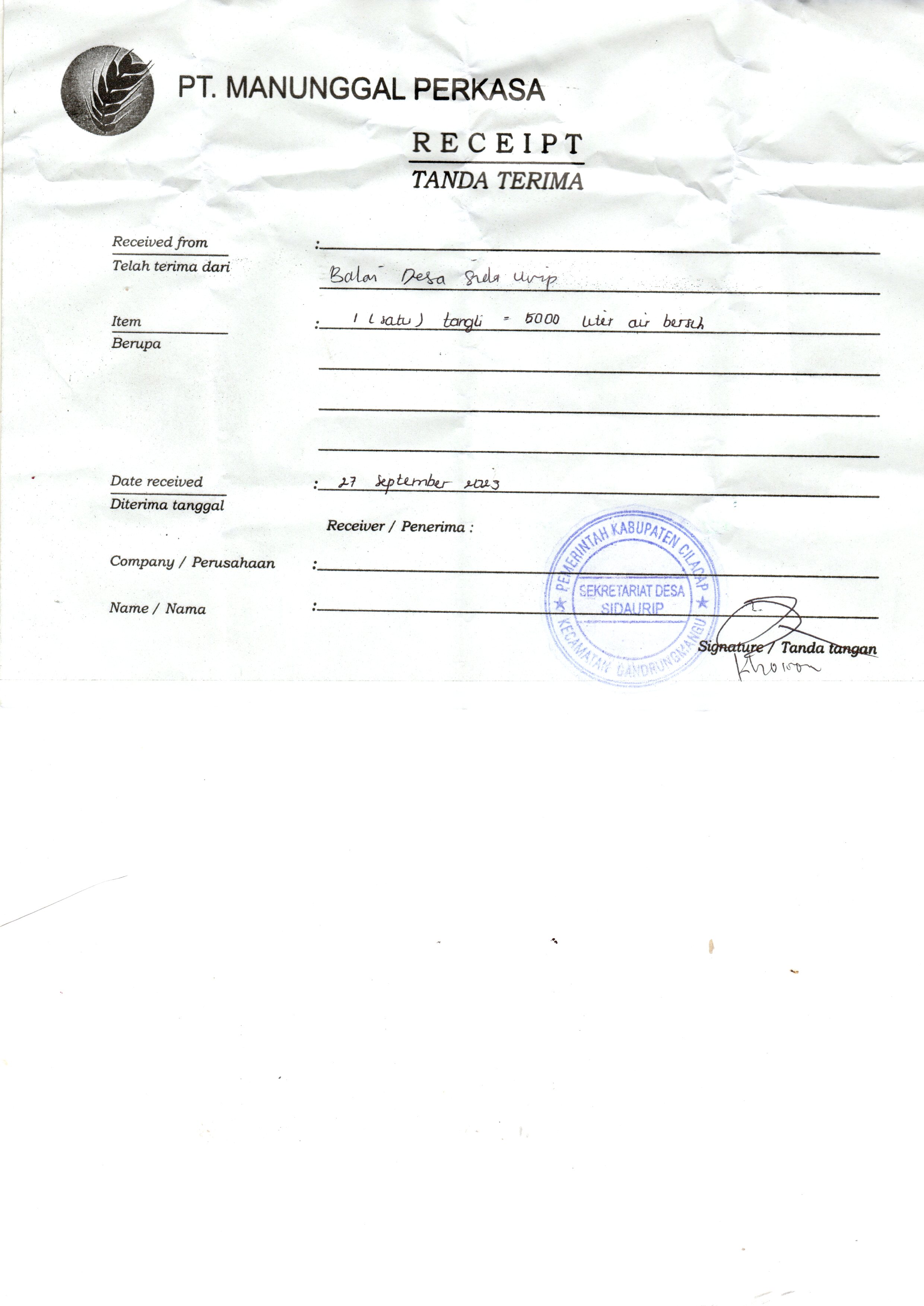 | Objek Realisasi | : | Masyarakat Dusun Sidasari RT.05 RW.05 Desa Sidaurip Kec. Gandrungmangu |