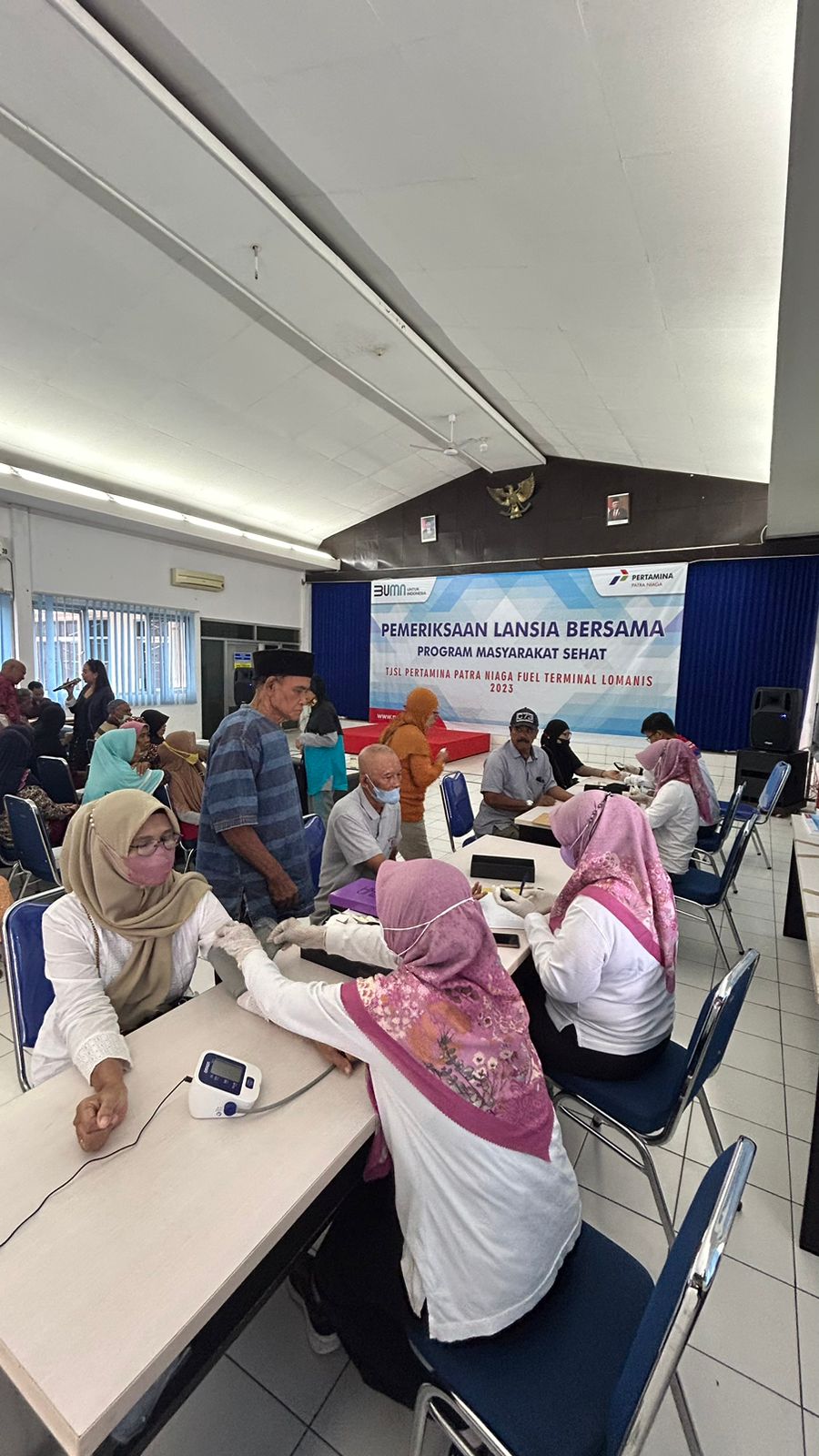 Pemeriksaan Lansia Bersama Program Masyarakat Sehat 2023 dilaksanakan melibatkan 100 warga usia lanjut dari Kelurahan Donan Cilacap. Kegiatan dilaksanakan untuk mendukung peningkatan kualitas kesehatan masyarakat di segala usia. Dalam kegiatan ini, FT Lomanis juga memberikan bantuan septik tank sehat, bantuan susu dan makanan tambahan, serta bantuan kesehatan secara simbolis kepada warga Kelurahan Donan. Penyerahan bantuan secara simbolis diserahkan oleh Bapak Harsono Budi selaku Direktur Perencanaan dan Pengembangan Bisnis Pertamina Patra Niaga, dan oleh Bapak Yuan Peter Paul selaku Fuel Terminal Manager Lomanis, kepada Bapak Tutur selaku Lurah Donan dan warga penerima manfaat.