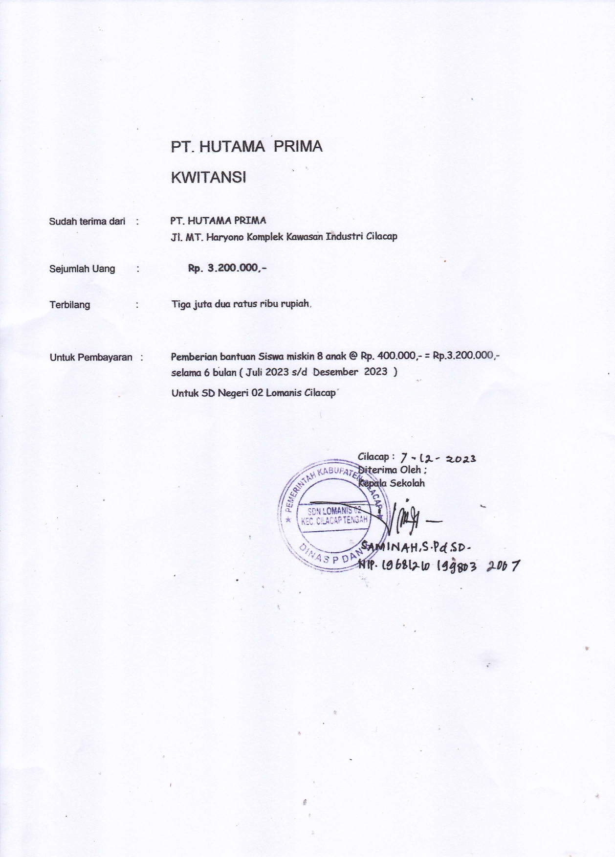 | Keterangan | : | Bantuan bagi siswa miskin 8 anak |