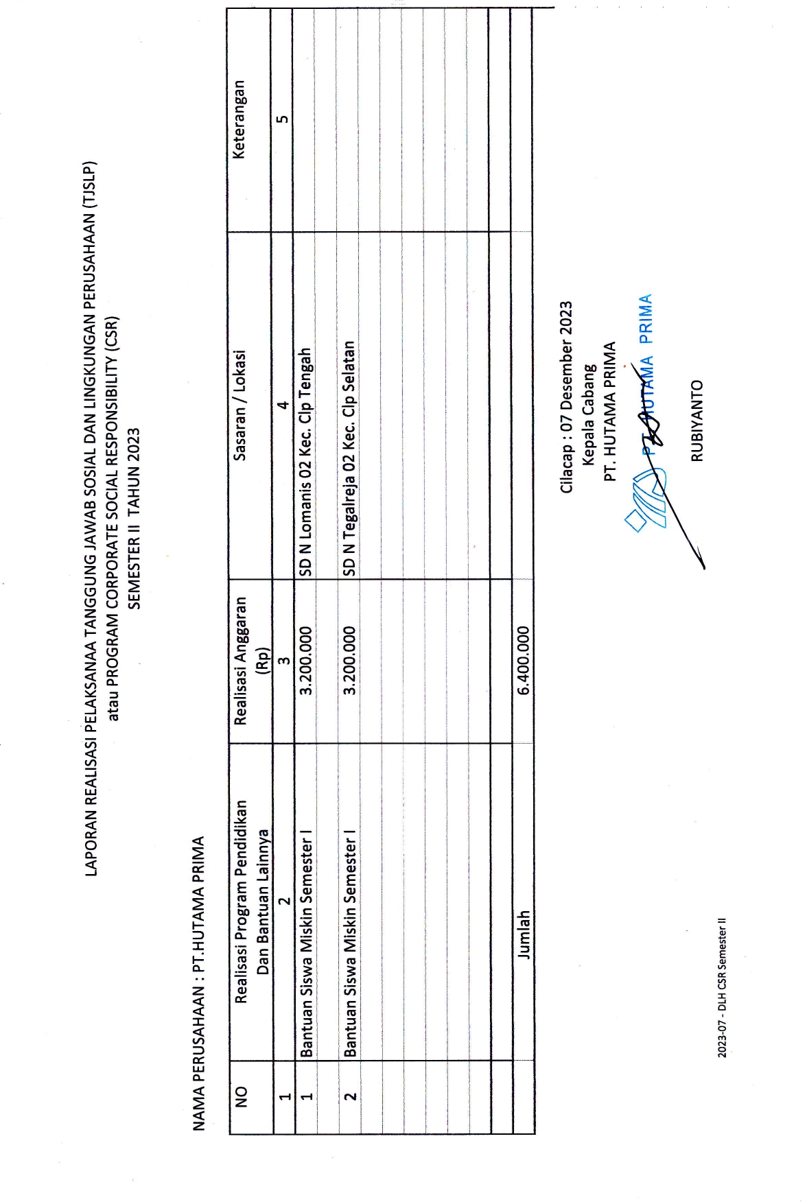 | Objek Realisasi | : | 8 anak siswa miskin SDN 02 Tegalreja Cilacap dan SDN 02 Lomanis Cilacap |