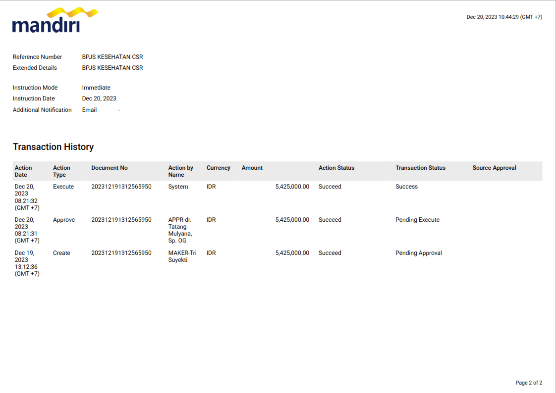 | Keterangan | : | Bantuan untuk BPJS Kesehatan bulan Desember untuk masyarakat umum RSU Duta Mulya Majenang |