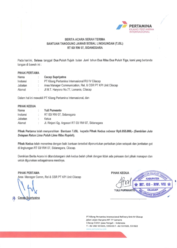 | Objek Realisasi | : | RT .03/ RW .07 Kelurahan Sidanegara |
