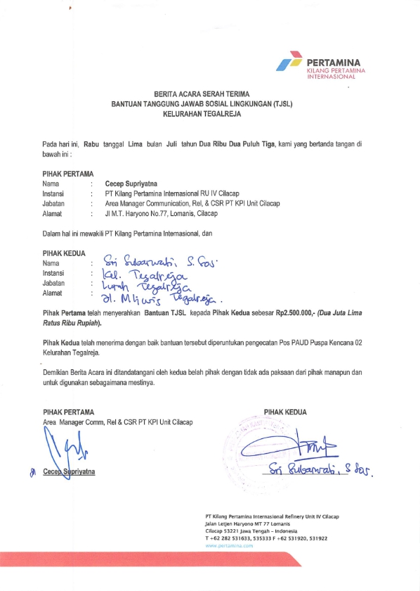 | Objek Realisasi | : | Pos PAUD Puspa Kencana 02 Kelurahan Tegalreja |
