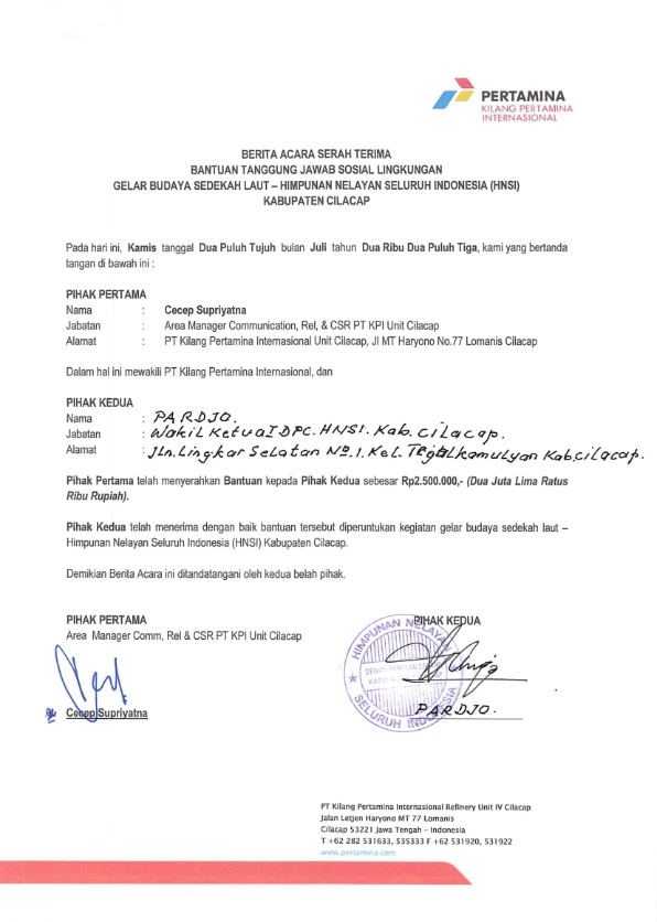 | Objek Realisasi | : | Himpunan Nelayan Seluruh Indonesia (HNSI) Cilacap |