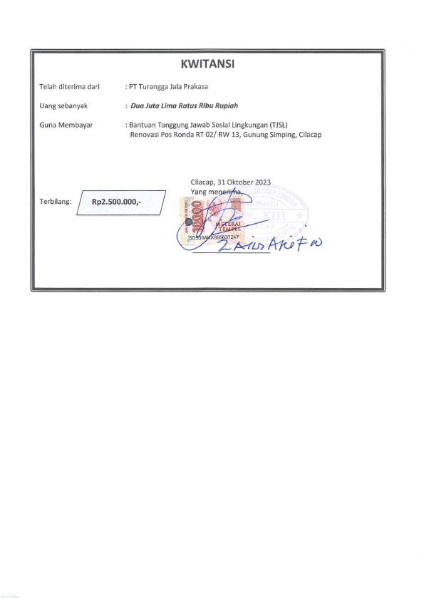 Bantuan dana untuk renovasi pos ronda di lingkungan RT 02/ RW 13, Gunung Simping