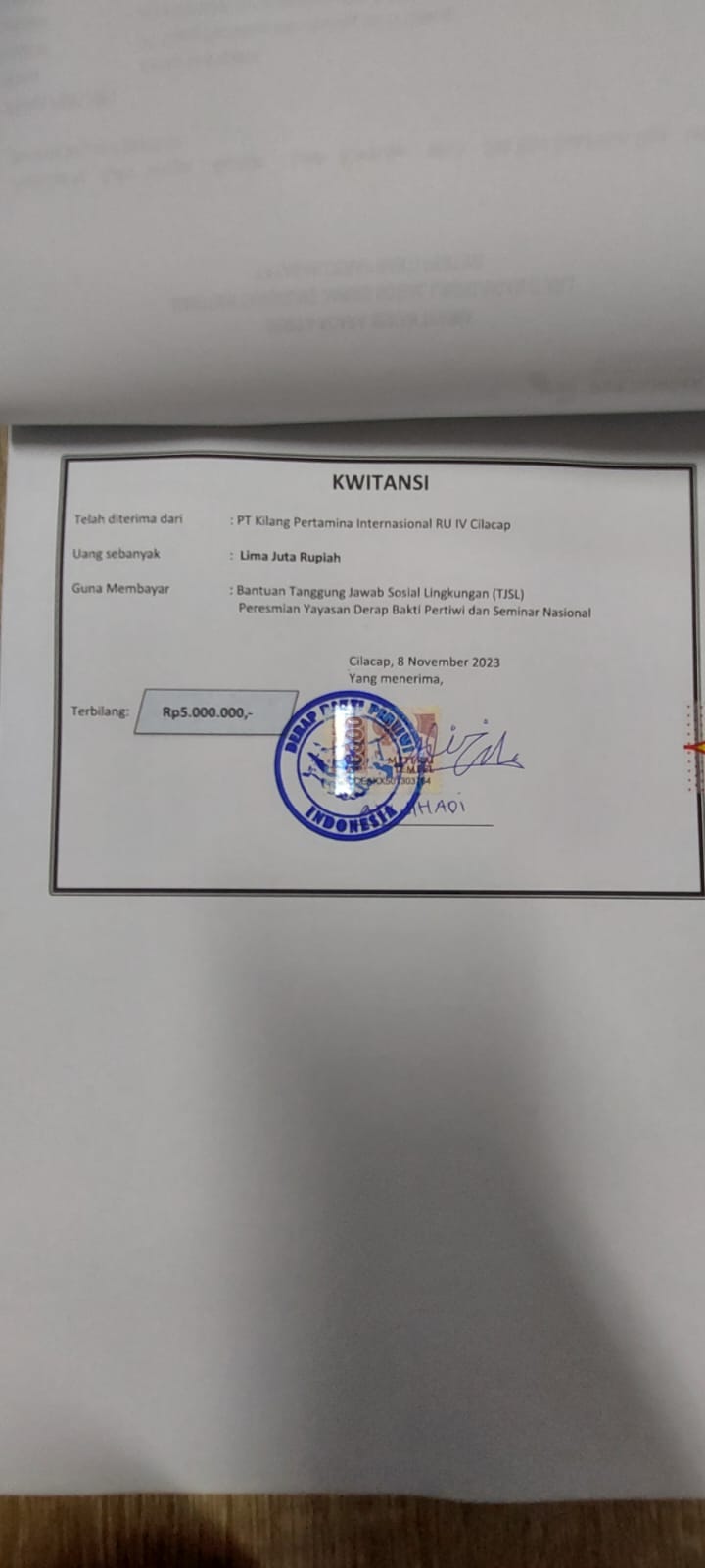 | Keterangan | : | Bantuan dana sponsorship pada kegiatan peresmian Yayasan Derap Bakti Pertiwi |
