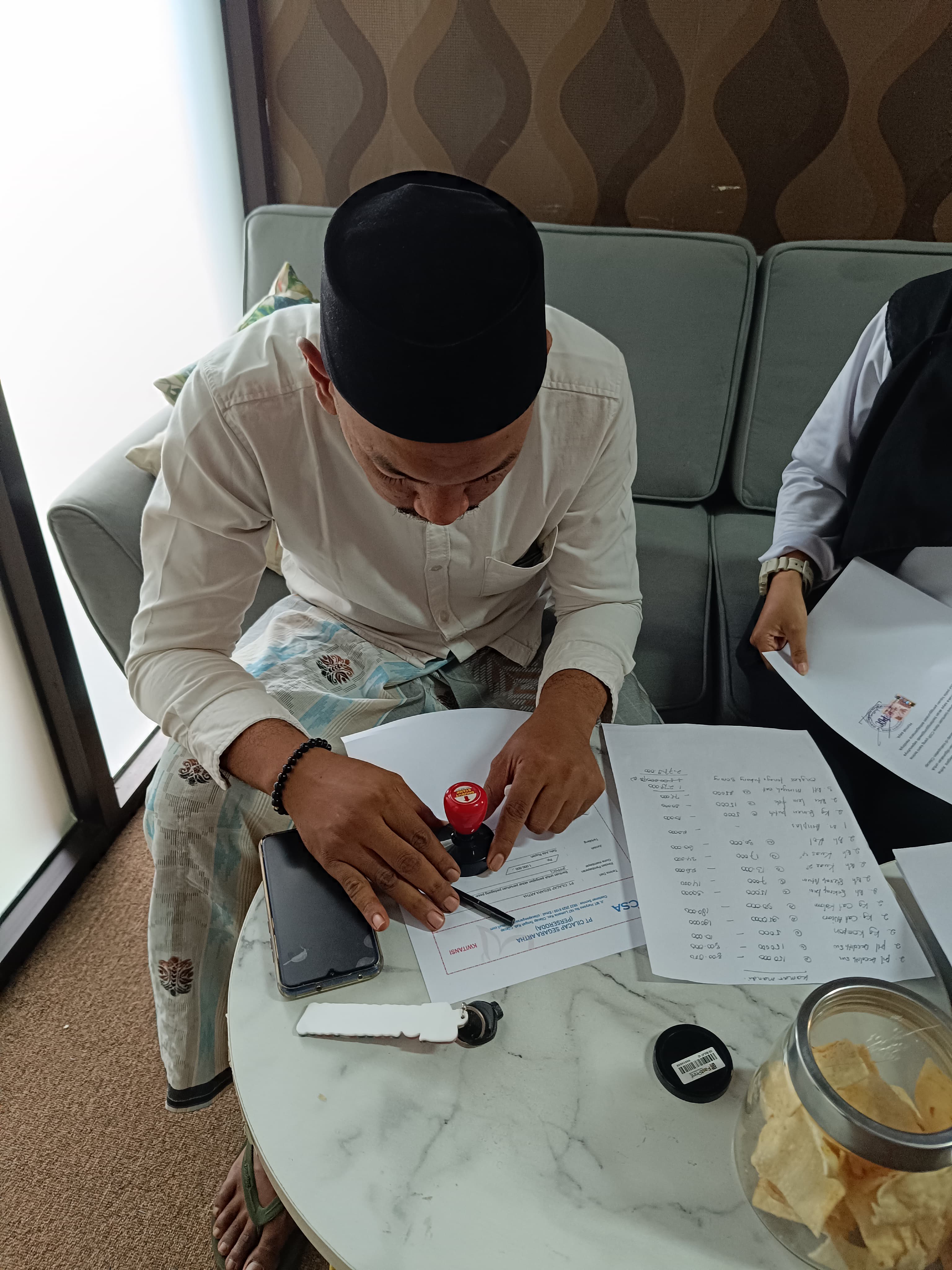 penyerahan bantuan untuk kegiatan pengajian akbar yang dilaksanakan diarea parkir lantai dasra pasar gede cilacap