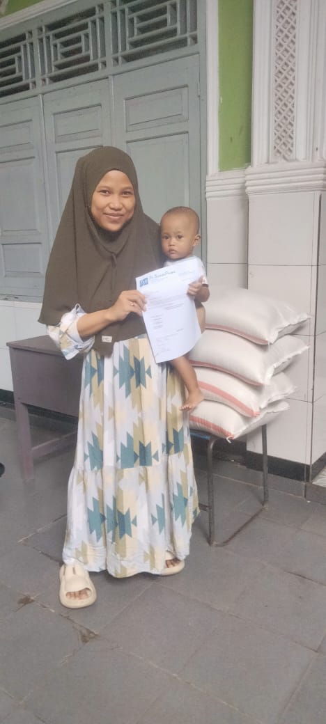 Pemberian zakat fitrah berupa 100 kg beras untuk Panitia Zakat Fitrah Madrasah Diniyah Tarbiyatul Aulad, Bandengan, Cilacap Selatan