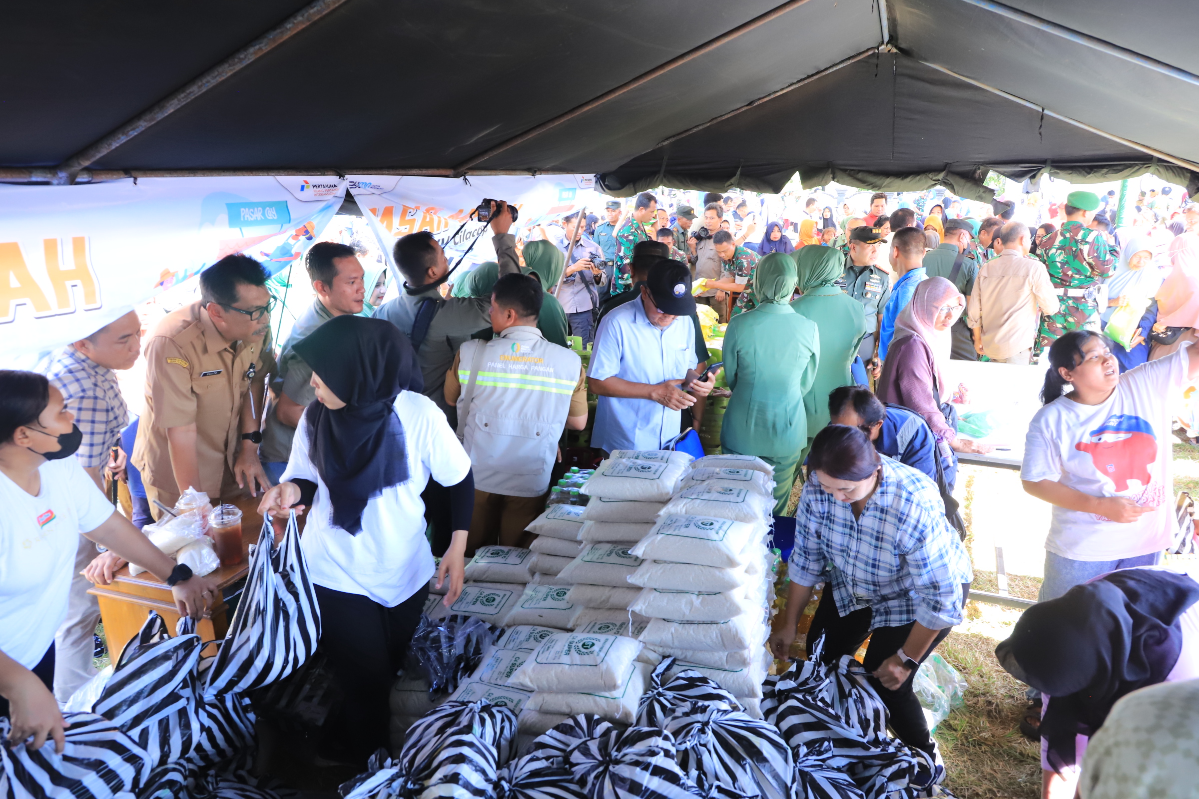 Bantuan TJSL PT KPI RU IV berupa partisipasi pada kegiatan Pasar Sembako Murah di Alun-alun Kabupaten Cilacap bekerja sama dengan Kodim 0703/ Cilacap