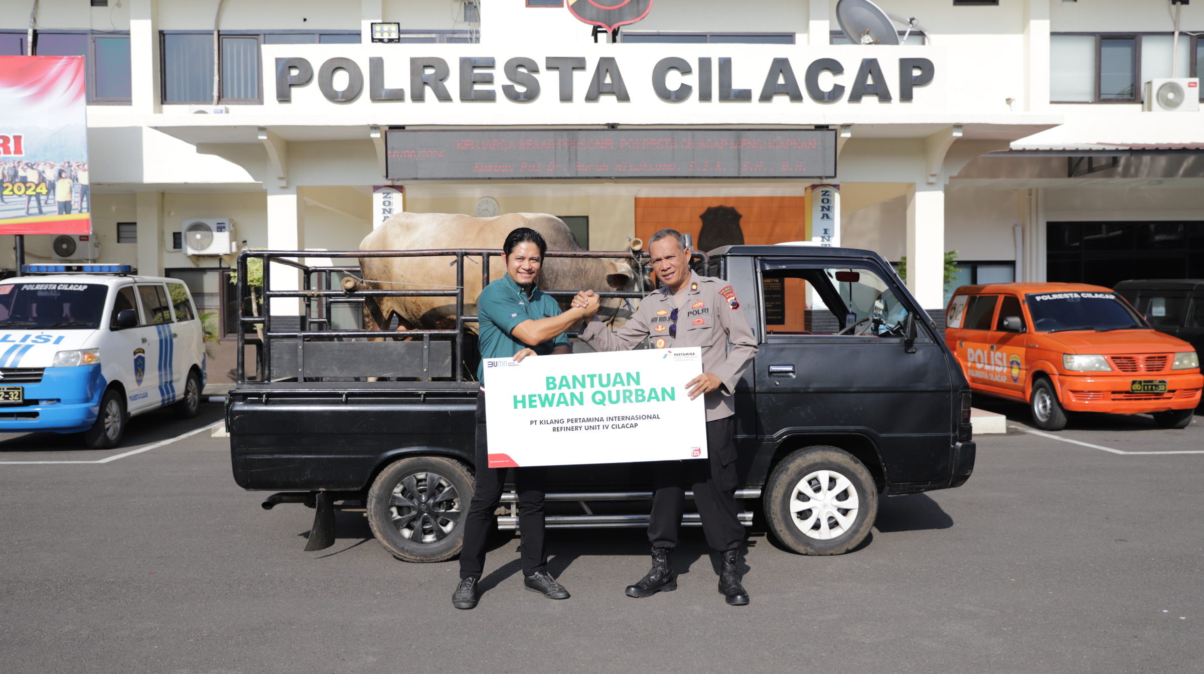 Bantuan TJSL PT KPI RU IV berupa 1 ekor sapi untuk dikurbankan di Polresta Cilacap dalam rangka Idul Adha 1445 H