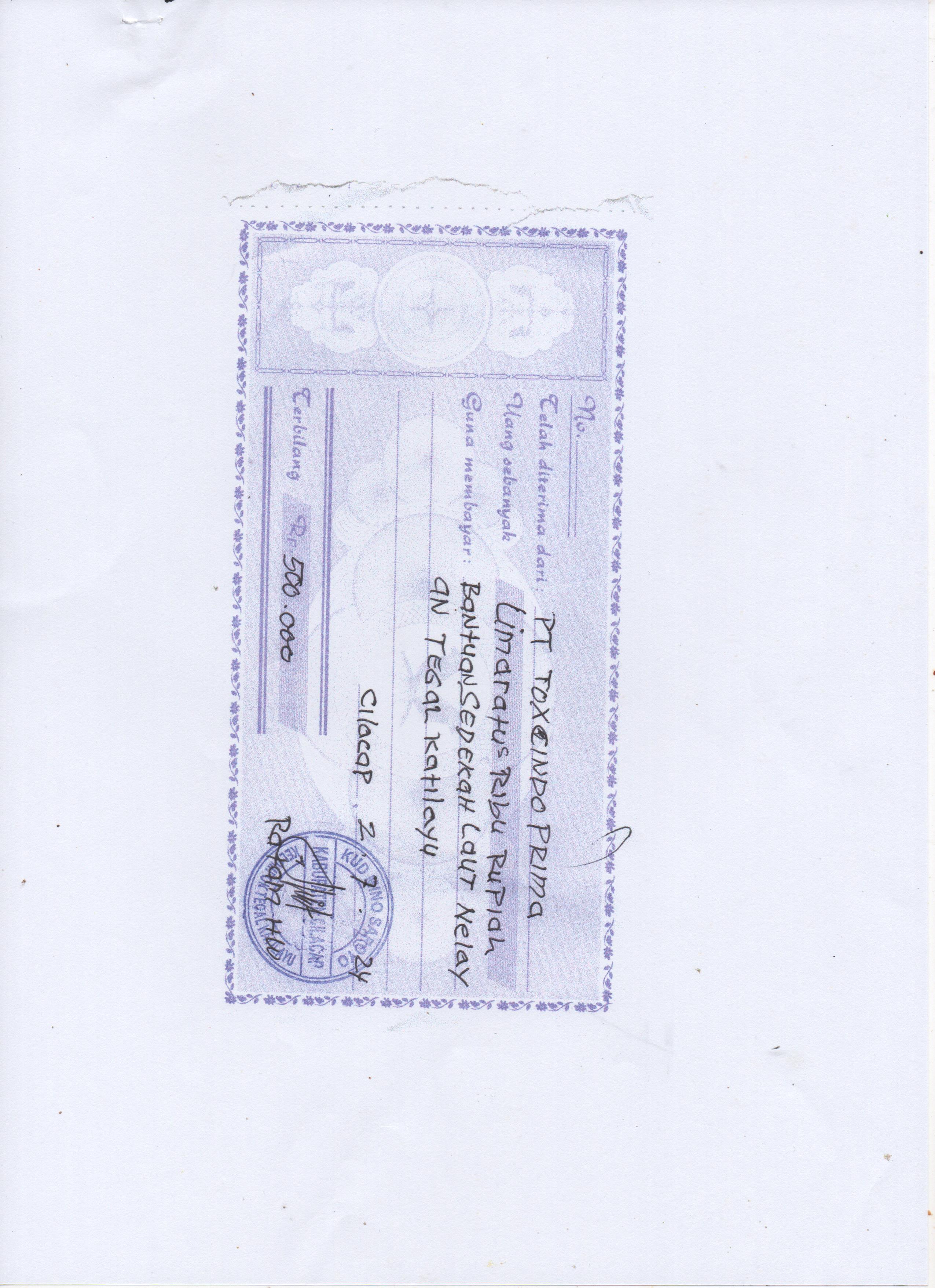 Donasi sebesar Rp 500.000,- kepada Kelompok Nelayan Tegal Katilayu dalam rangka acara Sedekah Laut 2024 yang akan diselenggarakan pada tanggal 12 Juli 2024