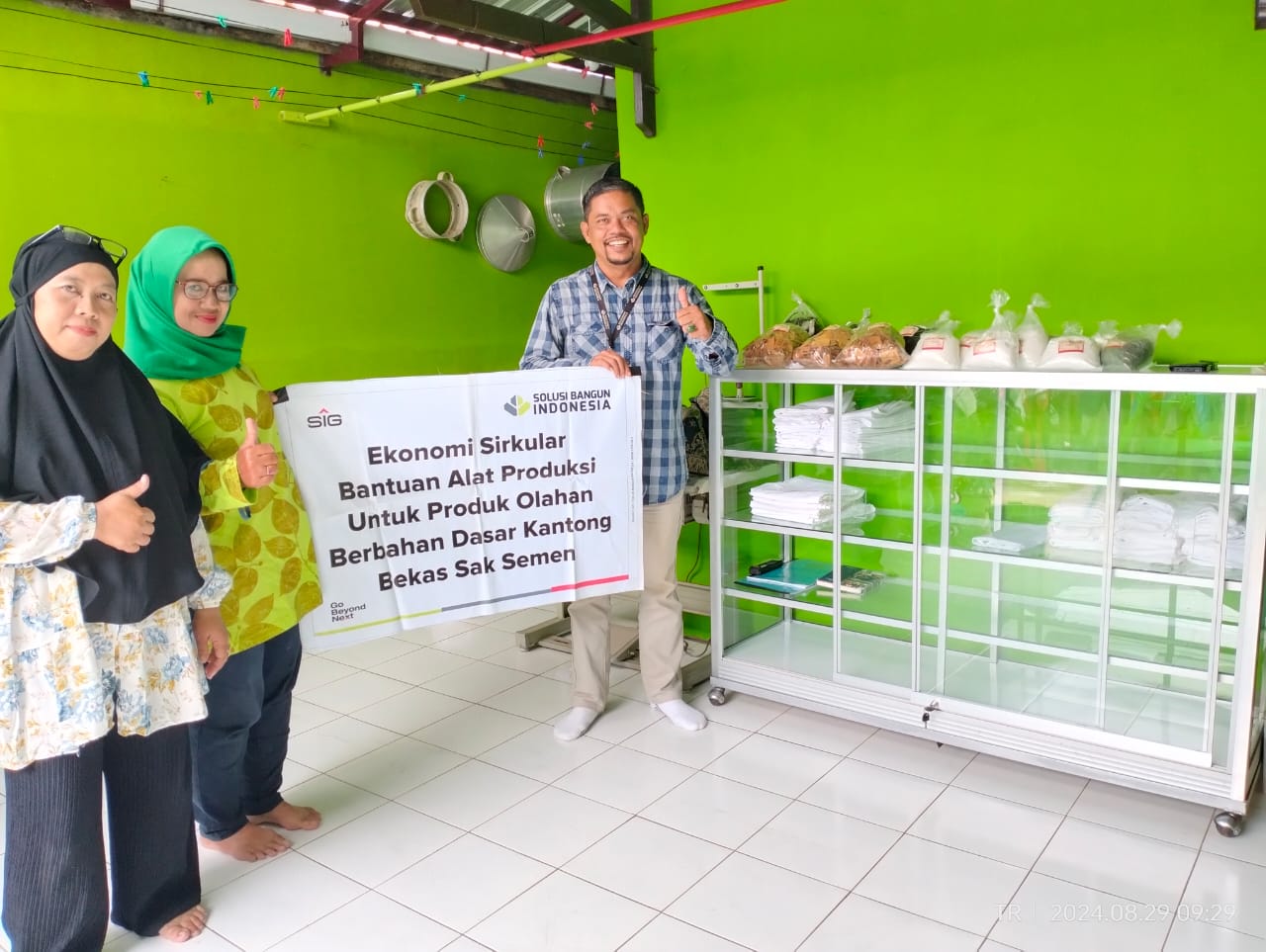 | Keterangan | : | Dukungan UMKM untuk mengolah bekas kantong semen menjadi kerajinan dan bahan campuran produk |