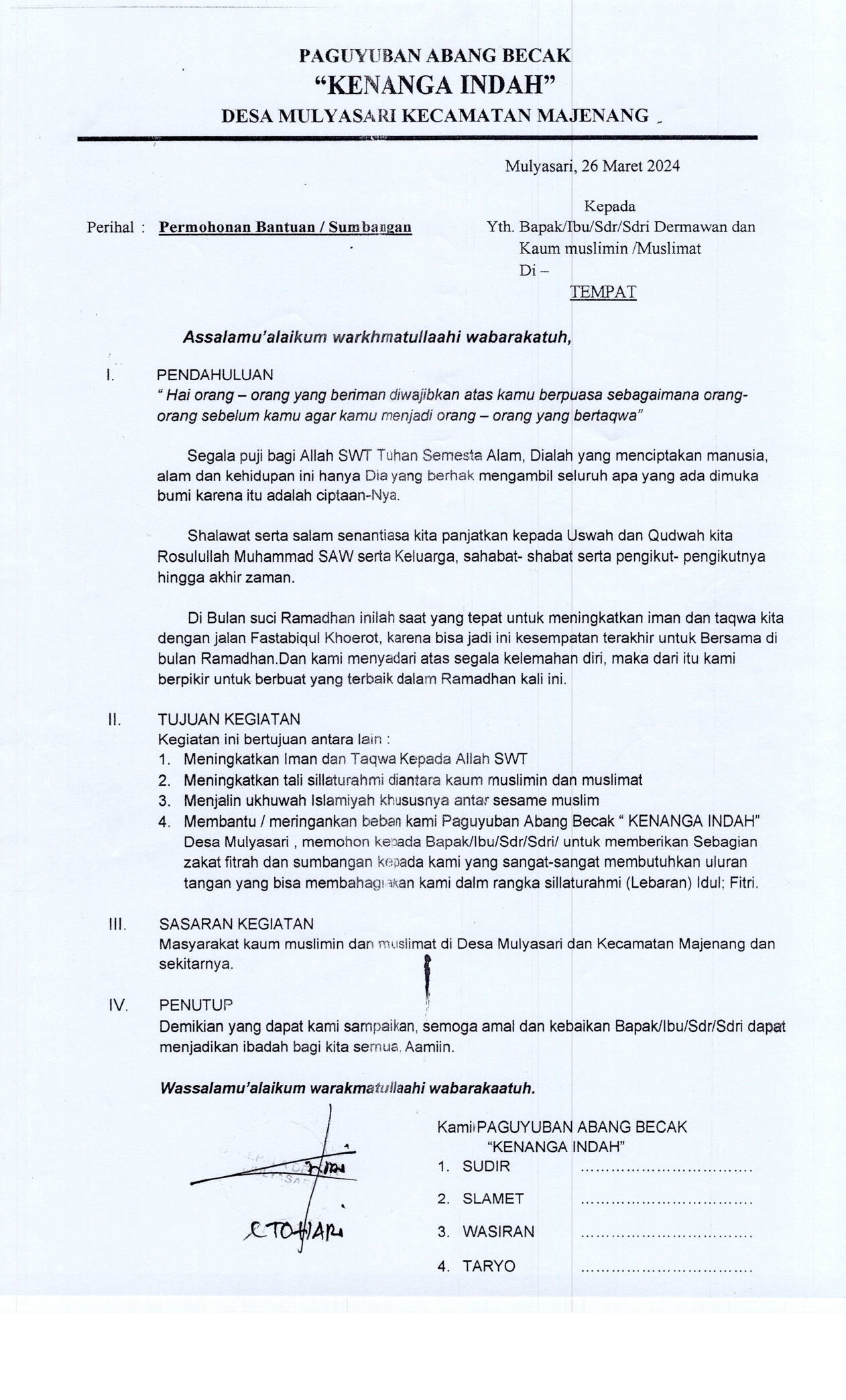 PAGUYUBAN ABANG BECAK "KENANGA INDAH" DESA MULYASARI, KEC. MAJENANG, KAB. CILACAP