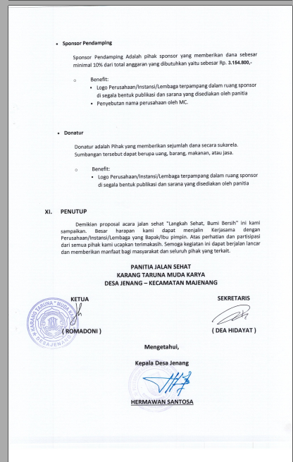 | Keterangan | : | Bantuan Dana Kegiatan Jalan Sehat Karya Bakti Karang Taruna Muda Karya Desa Jenang, Kecamatan Majenang |