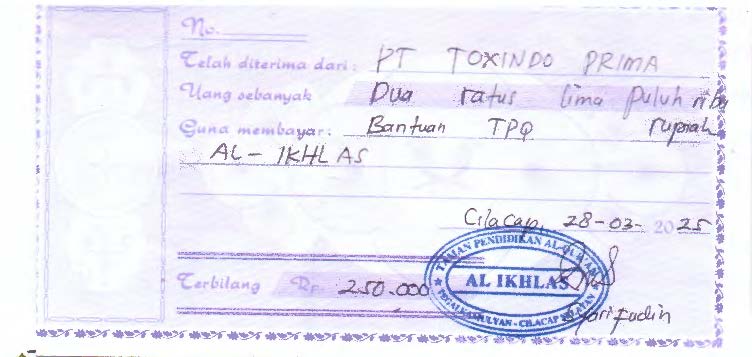 | Objek Realisasi | : | Taman Pendidikan Al Qur'an "Al Ikhlas", Perum Tegalasri, Tegalkamulyan, Cilacap Selatan |