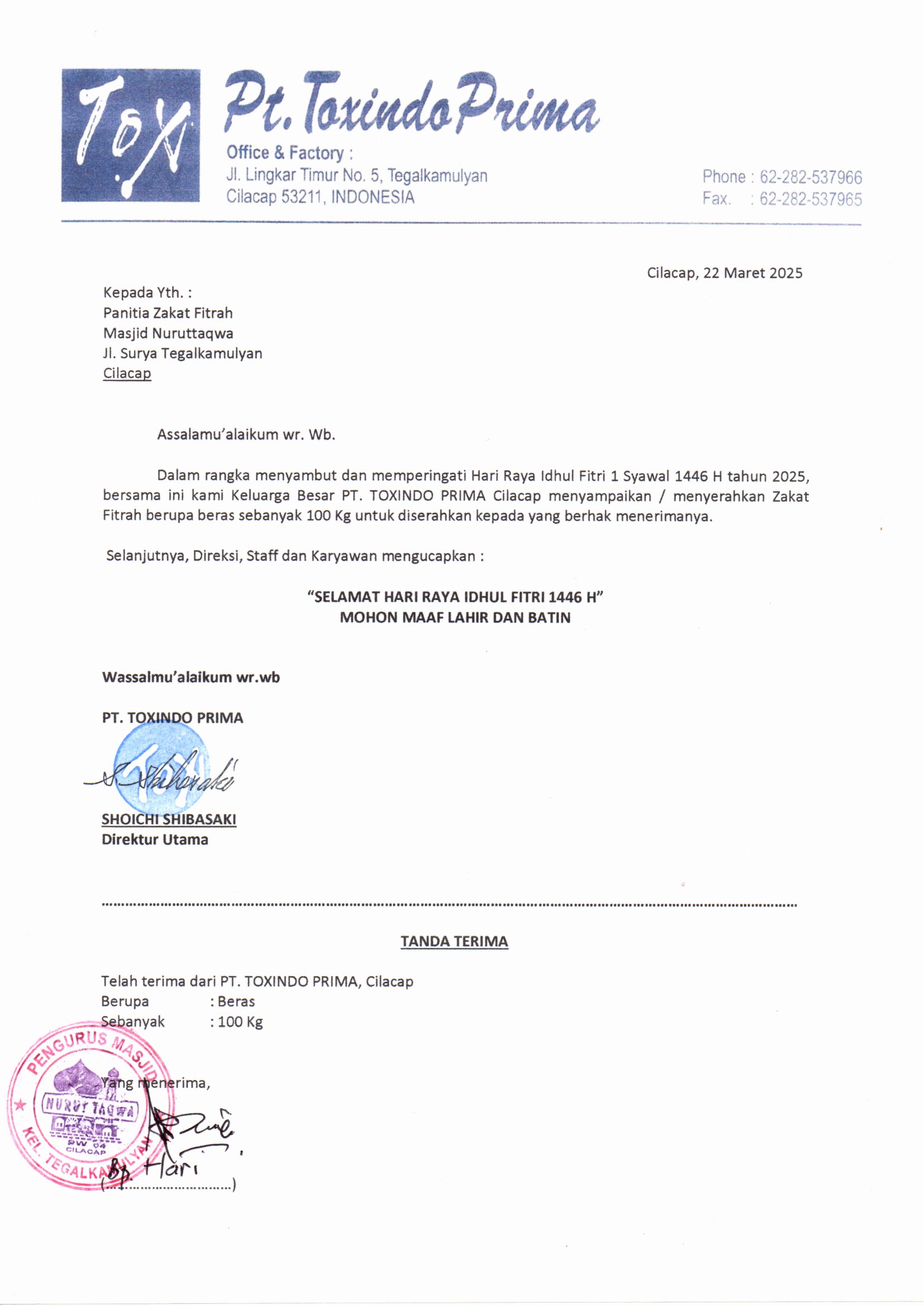 | Keterangan | : | Zakat Fitrah Idul Fitri 2025 berupa Beras sebanyak 100 kg |