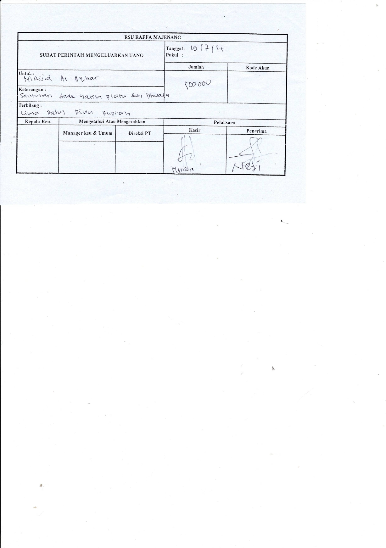 | Keterangan | : | Bantuan Dana Kegiatan Santunan Anak Yatim dan Dhuafa Masjid Al Azhar Majenang |