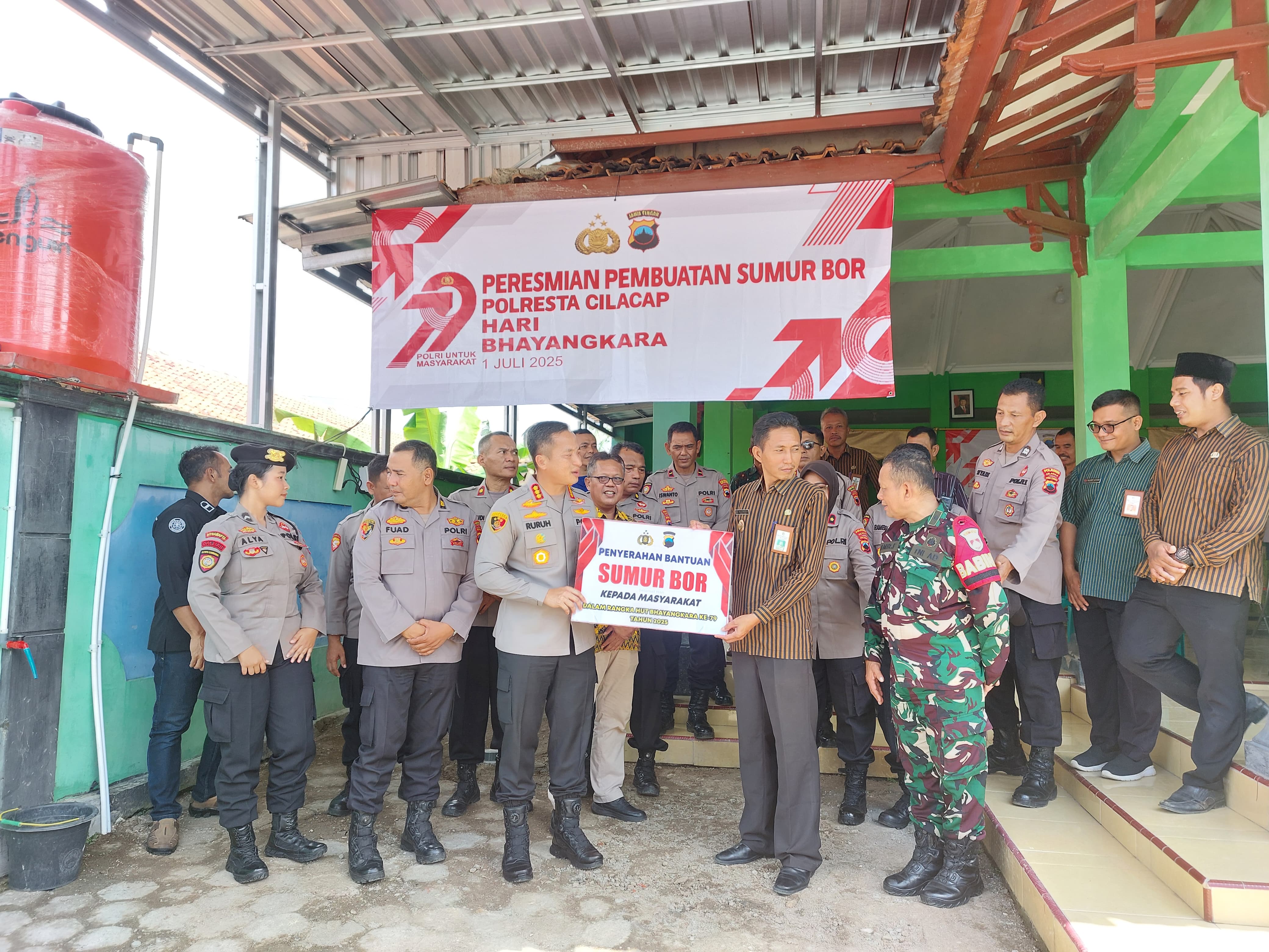 DUKUNGAN PAKET SUMUR BOR UNTUK MASYARAKAT DESA MANDALA DALAM RANGKA HARI BHAYANGKARA, KERJASAMA SBI DAN POLRESTA CILACAP
