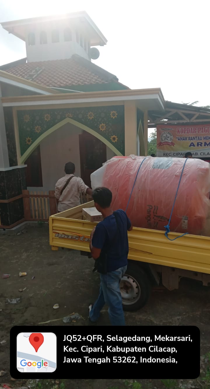 | Keterangan | : | Bantuan Toren Kapasitas 1.050 Liter sebanyak 1 bh ke Masjid Nurhuda Dusun Gunungsari, Desa Mekarsari, Kec. Cipari, Kab. Cilacap |
