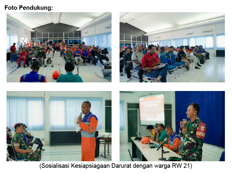 Kegiatan Sosialisasi Kesiapsiagaan Darurat Warga Ring 1 FT Lomanis dilaksanakan sebagai upaya meningkatkan pemahaman dan kewaspadaan masyarakat sekitar terhadap potensi keadaan darurat di lingkungan industri. Kegiatan ini dilaksanakan dua kali, yaitu pada 01 Oktober 2025 bersama warga RW 15 dan 08 Oktober 2025 bersama warga RW 21 Kelurahan Donan, dengan jumlah peserta masing-masing 90 orang warga.