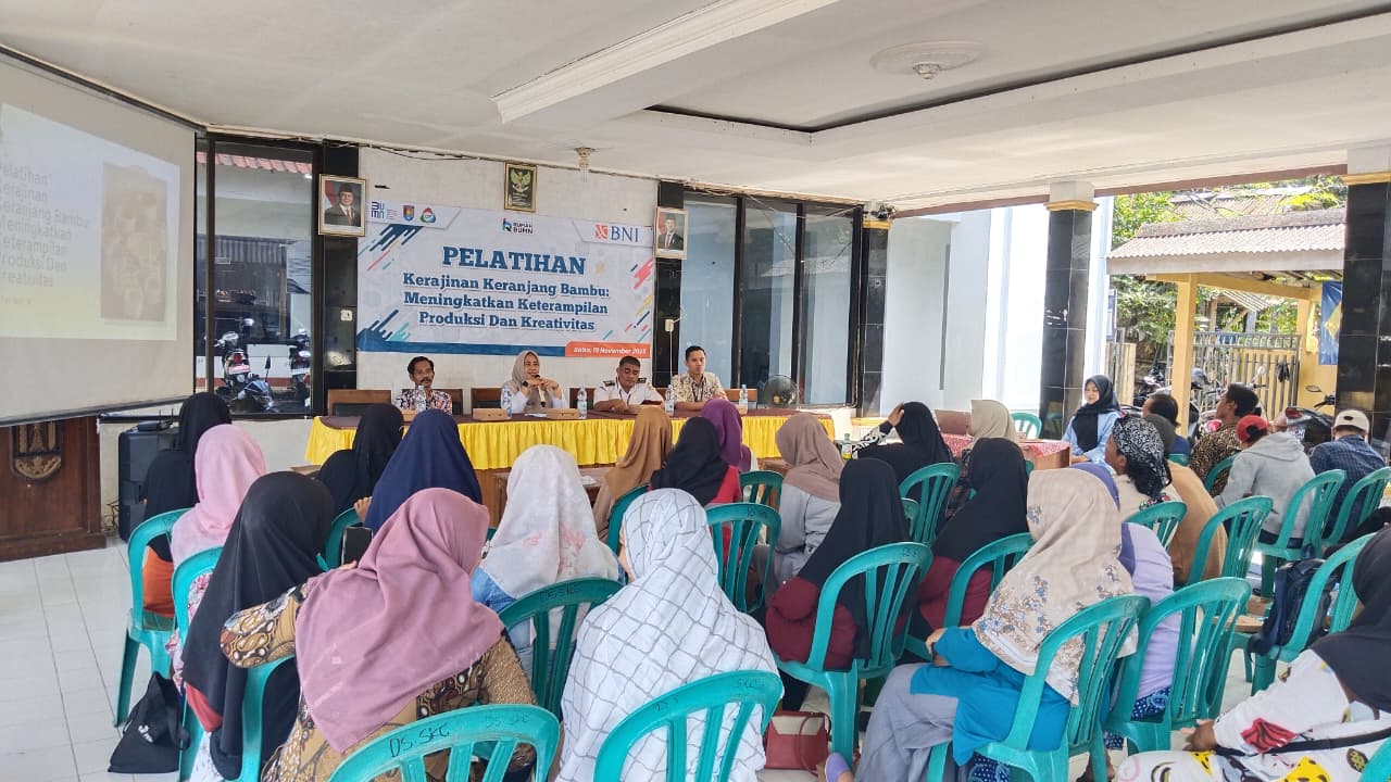 Pelatihan Kerajinan Keranjang Bambu: Meningkatkan Keterampilan Produksi dan Kreativitas memberikan edukasi kepada UMKM mengenai pentingnya pemanfaatan bambu sebagai bahan kerajinan yang bernilai ekonomis dan berkelanjutan. Melalui pelatihan ini, peserta memperoleh pemahaman dan keterampilan dasar dalam proses pembuatan keranjang bambu, mulai dari persiapan bahan, teknik anyaman, hingga pembentukan desain yang kreatif. Selain itu, seluruh peserta diberikan fasilitas berupa bahan baku untuk pembuatan kerajinan keranjang bambu, dan pendampingan oleh narasumber dalam bentuk pembinaan kelompok.