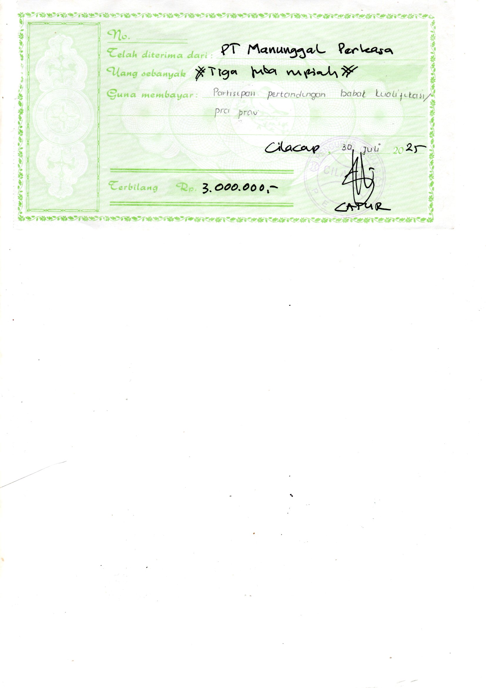 | Keterangan | : | Bantuan TJSLP untuk kegiatan 'Pertandingan Tenis Babak Kualifikasi Pra Porprov |