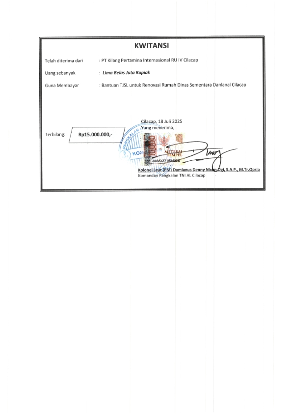 | Keterangan | : | Bantuan Dana Perbaikan Rumah Dinas Sementara Komandan Lanal Cilacap |