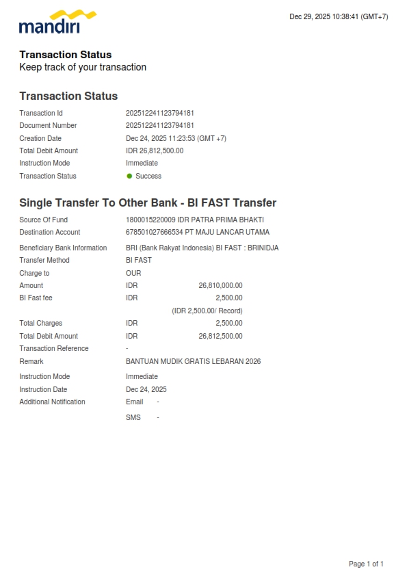 | Keterangan | : | Bantuan Bus Program Mudik/ Balik Rantau Gratis Lebaran Tahun 2026 melalui Pemerintah Kabupaten Cilacap |