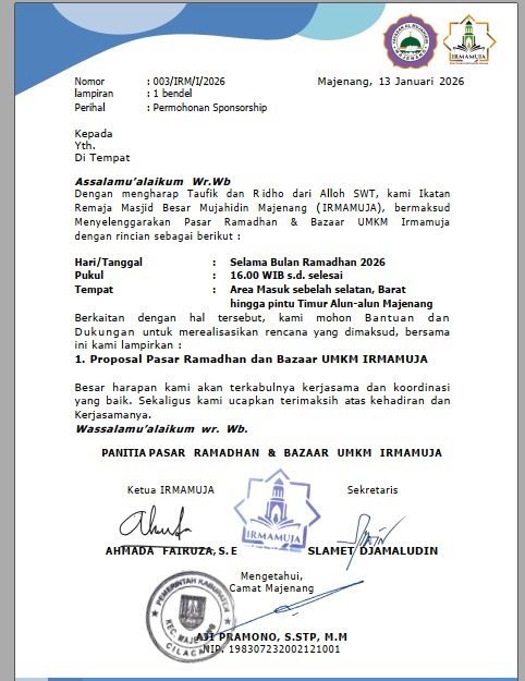 | Keterangan | : | Bantuan Dana Kegiatan Pasar Ramadhan dan Bazaar UMKM IRMAMUJA Majenang |