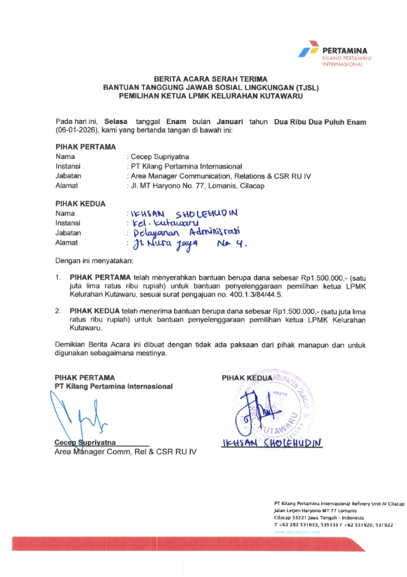 Bantuan Dana untuk Penyelenggaraan Pemilihan Ketua LPMK Kelurahan Kutawaru